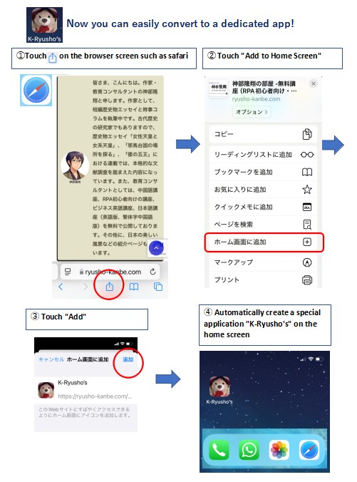 Hello everyone. My name is KANBE Ryusho, a writer. In this room. I am writing Japanese historical short essays. I would appreciate it if you could see the following works on this occasion.